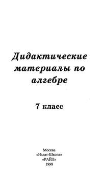 | Описание: | Дидактические материалы представляют собой сборник задач по всем разделам курса алгебры 7 класса. Цель пособия - помочь учителю в организации самостоятельной работы учащихся, проведении текущего и тематического контроля. В пособие включены тексты тематических зачетов, контрольных и самостоятельных работ, а также более 200 дополнительных задач. Тексты тематических зачетов и самостоятельных работ являются ориентировочными. По мере надобности и в зависимости от подготовленности класса учитель может вносить в них необходимые изменения, не нарушая при этом требования программы. |