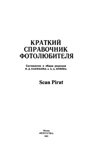 Раздел первый. НЕМНОГО ИСТОРИИ (Фомин А. А., Морозов С. А.) I. ПРЕДПОСЫЛКИ ДЛЯ ИЗОБРЕТЕНИЯ ФОТОГРАФИИ [5] 1. Камера-обскура [5] 2. Основной закон фотохимии [7] II. ПЕРВЫЕ В МИРЕ СНИМКИ [9] 1. Снимок Ньепса [8] 2. Снимок Тальбота [8] 3. Снимок Дагера [10] 4. Снимки Фрицше [11] III. СОВЕРШЕНСТВОВАНИЕ И РАЗВИТИЕ ФОТОГРАФИИ [13] 1. Фотография в науке и технике [14] 2. Фотография в общественной жизни [14] 3. Фотография как искусство [16] IV. ИЗ ИСТОРИИ СВЕТОПИСИ В РОССИИ [17] V. ОСНОВНЫЕ ДАТЫ СОВЕТСКОЙ ФОТОГРАФИИ [22] Раздел второй. СОВРЕМЕННЫЕ ФОТОАППАРАТЫ (Щепанский Г. В.) I. ОСНОВНЫЕ ЧАСТИ ФОТОАППАРАТА [33] 1. Корпус [33] 2. Объектив [33] 3. Затвор [46] 4. Экспонометры, входящие в конструкцию фотоаппарата [55] 5. Видоискатели и фокусировочные устройства [62] 6. Система зарядки [68] II. КЛАССИФИКАЦИЯ ФОТОАППАРАТОВ [71] 1. Фотоаппараты с жестковстроенными объективами [73] 2. Шкальные фотоаппараты [73] 3. Дальномерные фотоаппараты [75] 4. Зеркальные фотоаппараты [78] 5. Фотоаппараты с наводкой объектива на резкость по съемному матовому стеклу [82] III. ФОТОПРИНАДЛЕЖНОСТИ [82] 1. Видоискатели сменные [82] 2. Дальномеры [83] 3. Приставка для макросъемок ПЗФ [83] 4. Диарепродукционная установка ДРУ-2 [83] 5. Кольпа удлинительные [83] 6. Светофильтры съемочные [84] 7. Тросики фотографические [84] 8. Светозащитные бленды [84] 9. Наглазник [88] 10. Штативы [88] IV. Переходная гайка-винт [88] 12. Кронштейн КТЗ [88] 13. Резаки для фотобумаги [89] 14. Фотобачок [89] 15. Реле времени [89] 16. Электроглянцеватель [89] Раздел третий. ФОТОМАТЕРИАЛЫ (Иофис Е. А., Фомин А. В.) I. ОБЩИЕ СВЕДЕНИЯ [90] 1. Ассортимент [90] 2. Форматы, упаковка, маркировка [90] 3. Строение черно-белых фотоматериалов [91] 4. Строение цветных фотоматериалов [92] 5. Хранение фотоматериалов [93] II. ФОТОГРАФИЧЕСКИЕ СВОЙСТВА СВЕТОЧУВСТВИТЕЛЬНЫХ СЛОЕВ [94] 1. Характеристическая кривая [94] 2. Светочувствительность [95] 3. Фотографическая широта [96] 4. Контраст и контрастность изображения [97] 5. Цветопередача [98] III. ХАРАКТЕРИСТИКА ФОТОМАТЕРИАЛОВ [102] 1. Черно-белые негативные фотопленки [102] 2. Черно-белые негативные кинопленки [106] 3. Черно-белые негативные фотопластинки [107] 4. Черно-белые фотобумаги [109] 5. Черно-белые позитивные фотопленки [112] 6. Черно-белые позитивные фотопластинки [114] 7. Цветные негативные фотопленки [114] 8. Цветные фотобумаги [115] 9. Цветные обращаемые фотоматериалы [115] 10. Цветные позитивные фотопленки [117] 11. Импортные черно-белые и цветные фотоматериалы [118] Раздел четвертый. СВЕТ И ЦВЕТ (Панфилов Н.Д., Неткачев Л. Б.) I. ОБЩИЕ СВЕДЕНИЯ [123] 1. Лучистая энергия [123] 2. Спектральный состав света [123] 3. Основные световые величины и единицы [124] 4. Основные и дополнительные цвета [125] 5. Цветовой тон, насыщенность, светлота [126] 6. Монохроматические излучения и спектральные цвета [126] 7. Излучения сложного спектрального состава и метамерные цвета [127] 8. Цветовая температура [127] 9. Количественная характеристика цвета [128] 10. Избирательное отражение, пропускание и поглощение света [128] 11. Стандарты источников света [132] II. ИСТОЧНИКИ СВЕТА [132] 1. Солнце [132] 2. Электрические осветительные приборы [133] 3. Электронные импульсные фотовспышки [136] Раздел пятый. ФОТОСЪЕМКА (Яштолд-Говорко В. А., Миненков И. Б., Панфилов Н.Д., Фомин А. А., Фомин А. В., Луговьер Д. А.) I. ПОНЯТИЕ ОБ ОСНОВНЫХ ВЫРАЗИТЕЛЬНЫХ СРЕДСТВАХ [148] 1. Композиция [148] 2. Сюжетно-тематический (смысловой) центр [149] 3. Светотень [149] 4. Колорит [149] 5. Перспектива [150] 6. Точка и момент съемки [151] 7. Планы и ракурс [151] 8. Контрасты [1